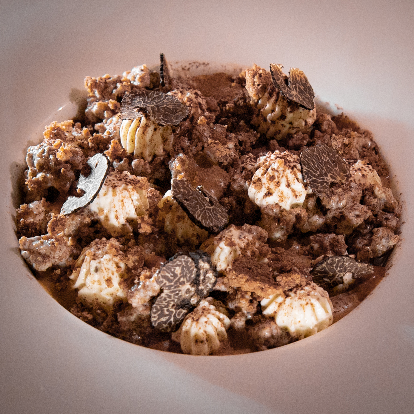Half-cooked Foie Gras, Coconut Milk, Cacao, Brioche.