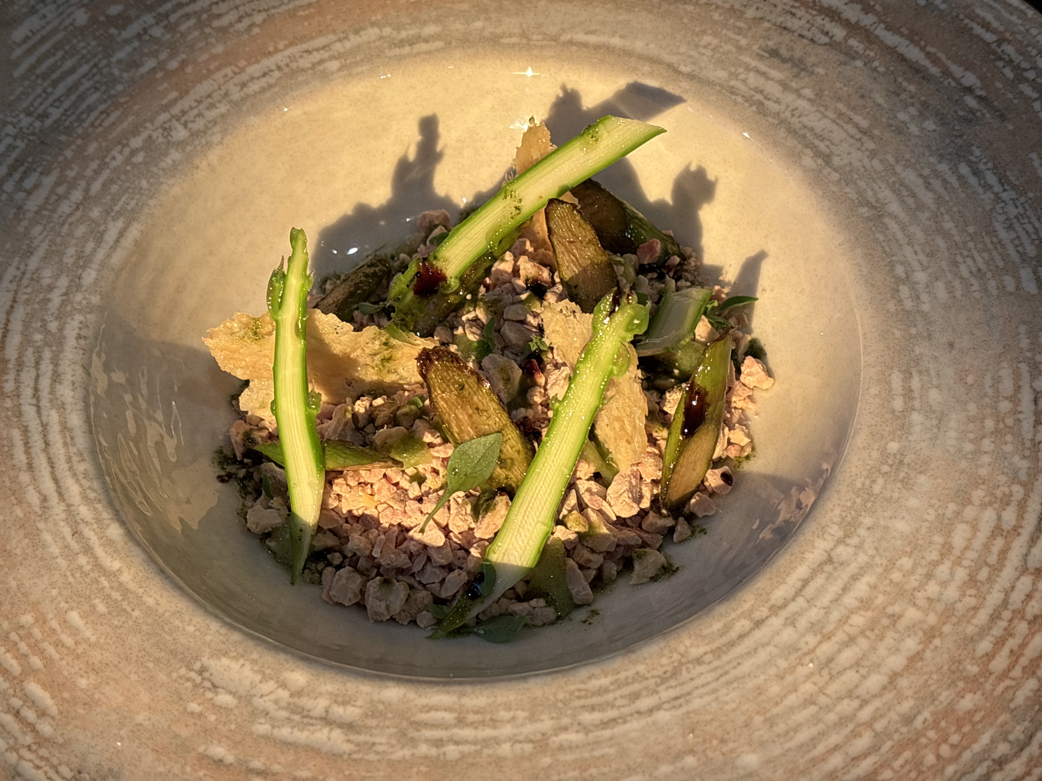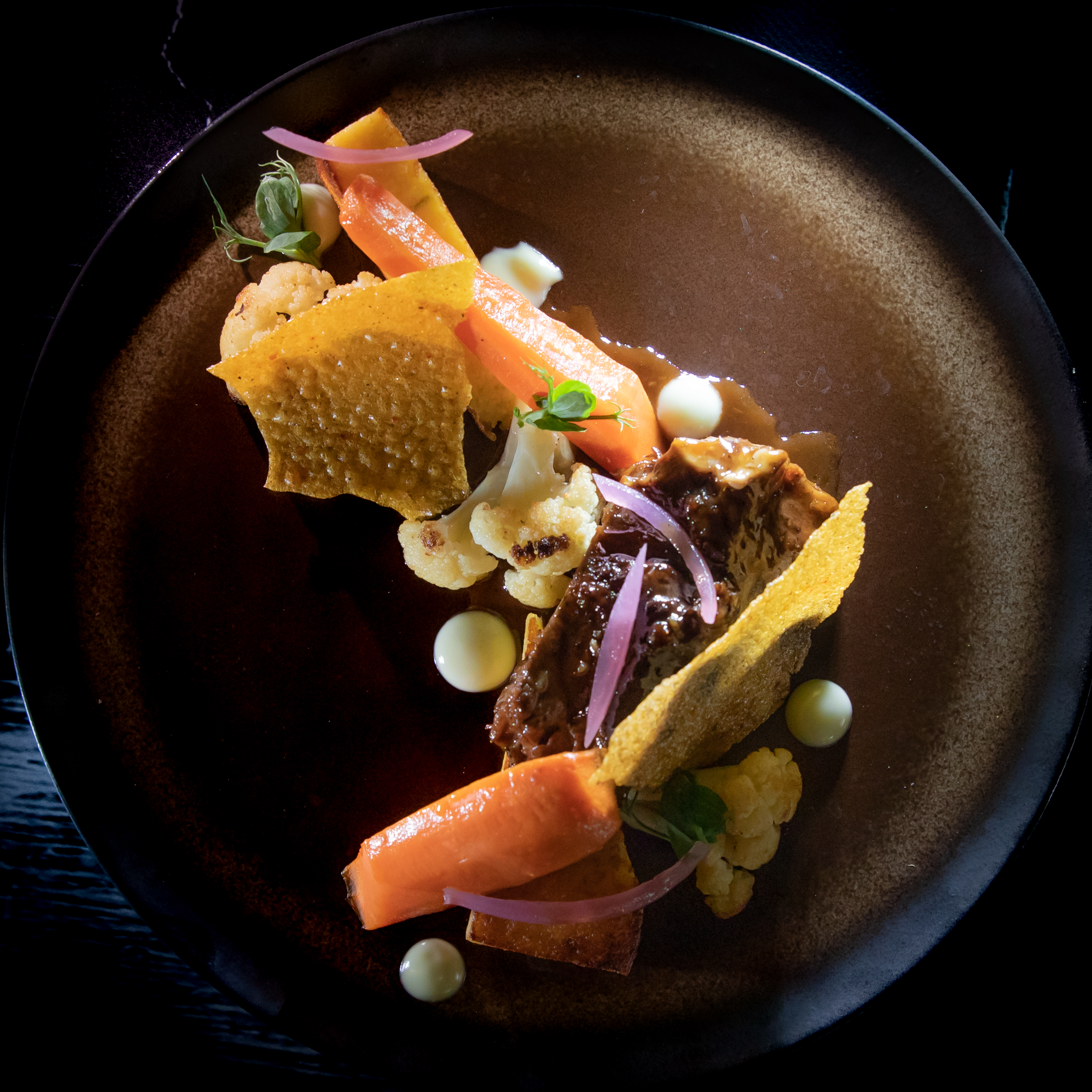 Pork Shoulder braised, Polenta, Hazelnut, Artichoke, Farigoule.